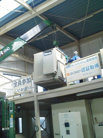 1.5tほどの体重のものを大型ユニック車で吊り上げ、移設に立ち会ってました。