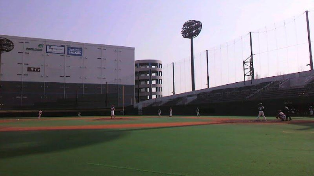 アッシーのタケゾーさんの車で、いざ、大田スタジアムへ出陣
