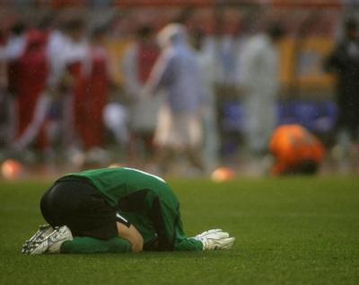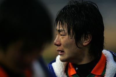 試合終了後、ピッチに倒れこんだ