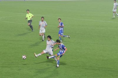 前半ロスタイム間近、財前が突破して、一度ボールを奪われそうになりながら、