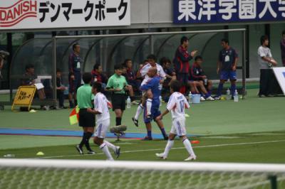 FC東京がこっちに返したボールをタッチラインの外にだしてスローインにし、