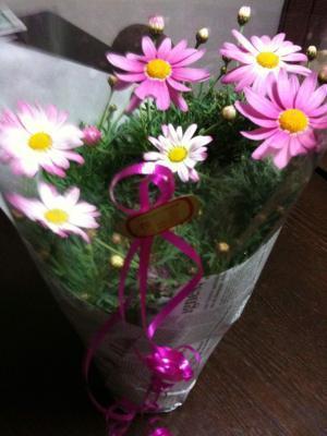 すると娘が中座して マーガレットの鉢植えを持って登場。