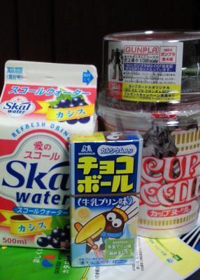 スコールのカシス味とチョコボールの牛乳プリン味ってのを見つけてゲット。あとガンプラ付きのカップヌードルも!(笑)やっぱ、ザクっしょ(爆)