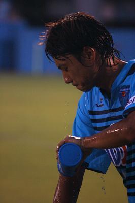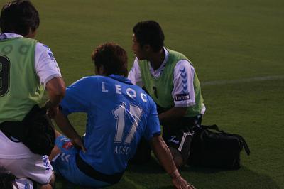 アツが前半で怪我で交代したので、途中から出てました。柏木と握手してました。