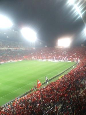 終了した頃には辺りは暗くなってました。もう冬が近づきつつあるんだなぁとレッズの選手を見ながら黄昏れて、のんびりしてたら他会場の結果が映し出され、試合中の歓声以上の盛り上がりが!ガンバ・フロンターレが敗れてるではありませんか。おいらが後半40分過ぎに携帯で他会場のスコア経過見てたらフロンターレは磐石に勝っていたのに・・。改めて脳裏に「サッカーは魔物」の言葉がよぎりました。