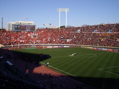 空は気持ちいいぐらいの快晴、赤色もよく映えるように綺麗なレッズ・アントラーズサポの色合いでてました。電車でみたサポの割合から想像できてましたが、アントラーズサポ負けてませんがレッズサポ多かったです。AWAY側にもそこそこレッズサポいました。いやはや、恐るべし・・・です。