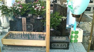 新盆の方のお墓に線香をあげにいきます[e77]
