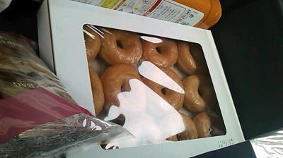 写真は、新商品のドーナツ(12個で約800円)です[e761]