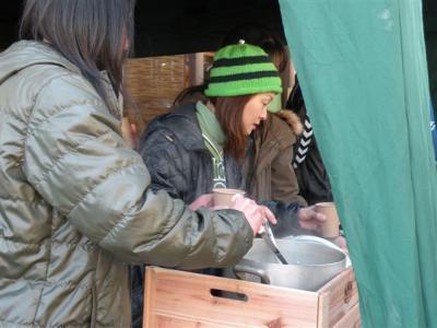 熱々の野菜スープが 振舞われました。