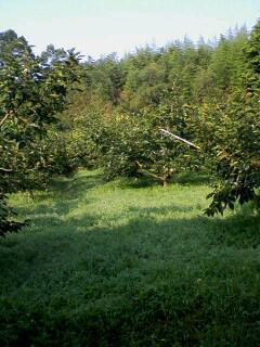 朝 洗面所の窓から見た 家の裏の柿畑です。