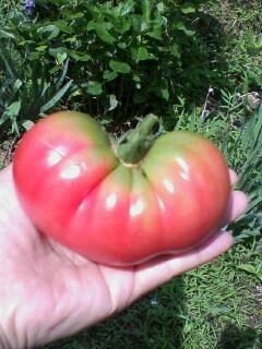 畑で撮った写真はトマトがお日様に反射して