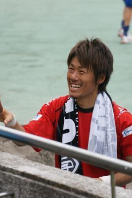 感極まって涙が・・・。それを優しく支えるゼルビアの選手。