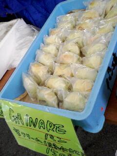 雨の中せまいテントの下で選手と一緒に頂いたので