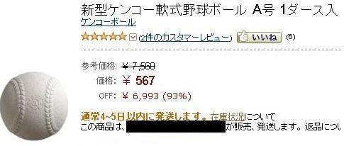 いつも使っているAmaz●nで軟式ボール1ダースを探すと・・・