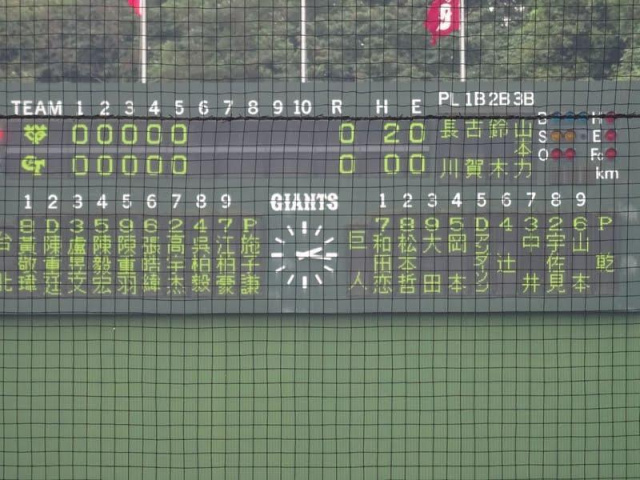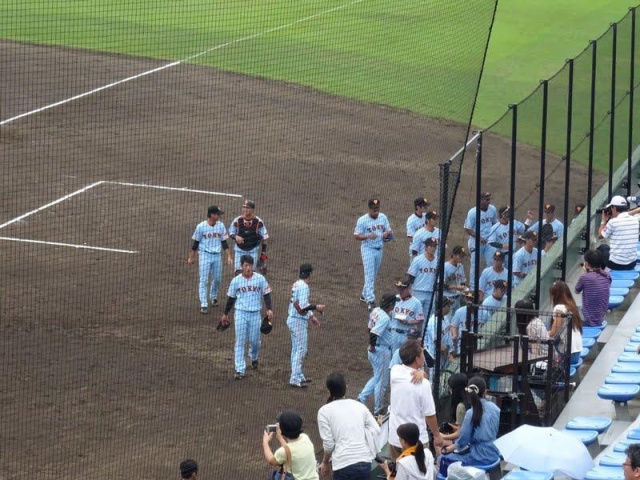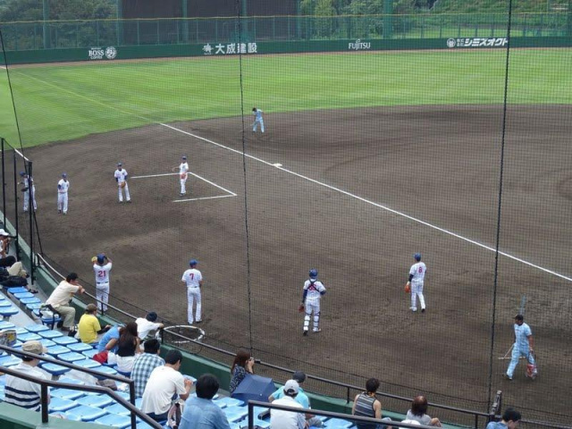 試合開始を少し過ぎてしまいましたが、今日は台湾選抜との交流戦を見に来ました。こういった外国のチームとの対戦はなかなか経験がないので新鮮ですね。この試合の観戦が私にとって巨人のファームチームを見る今年最後の試合になると思います。しかし天気が心配!パラパラ来ています。最後まで持ってくれよ。