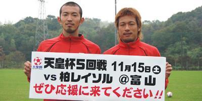 「天皇杯はシーズン最後の大会でモチベーションも高いですし、ましてや地元・富山でサッカーができるので、とても楽しみにしています。自分のプレーを富山の皆さんに見てもらえる機会はなかなかないと思いますし、ぜひ、スタジアムへ足を運んでいただいて、熱いご声援を宜しくお願いします。」