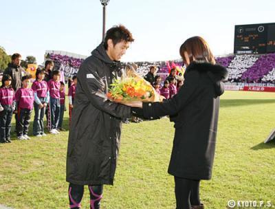 J1通算100試合出場を達成した水本裕貴選手に対し、