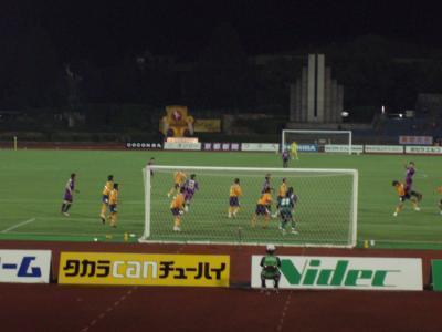 左サイドから中山のクロスに徳重が右へ流れながらのヘッド。外れる。