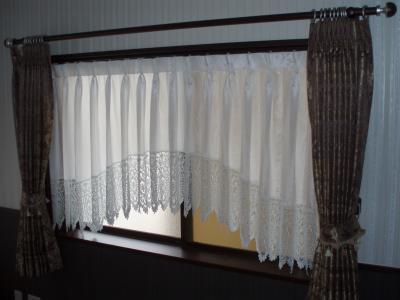 写真1はオーソドックスな腰窓用ですが、レースのカーテンをアーチ型にしてみました。