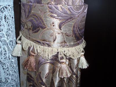 ドレープカーテンはちょっと重たい感じもしますがシックな感じで金糸をあしらったトラッド風なものにしました(写真3)。アクセントとしてタッセルにボンボリなんかつけて見ました(写真4)。