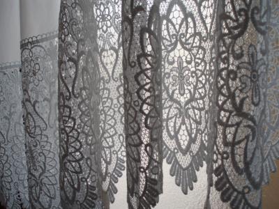 レースはミラーカーテンとも呼ばれるタイプでUVカット率が高く冷暖房に効果的なものです。裾にマクラメと呼ばれるレース帯をつけてみました(写真2)。