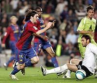 メッシが「神の子」になった! バルセロナのアルゼンチン代表FWリオネル・メッシ(19)が、スペイン国王杯準決勝ヘタフェ戦で「5人抜きゴー ル」を決めた。前半29分、自陣から次々と相手選手をドリブルで抜き去り、最後はGKもかわした。86年W杯でマラドーナが見せた伝説的プレーをそっくり 再現するスーパーゴールだった。試合はメッシの2得点などで、バルセロナが5−2と先勝した。