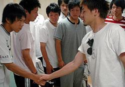 仏リーグ戦を5月末に終えた松井はオフを主に京都で過ごし、サンガに練習参加しながら調整している。23日の渡仏を前に、サンガの先輩として未来のホープたちと交流した。