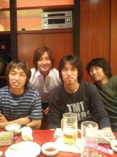 対戦した水戸のDFに鈴木和裕という選手がいるんですが、去年までサンガのDFを 守りきってくれた選手です。水戸の選手は当日は遠方であるので1泊したようで、鈴木選手とサンガの有志、そして元サンガの鈴木悟選手(現役引退)。富田晋也選手(岐阜FC)らが集まって市内のあるお店で焼肉パーティーをしました。