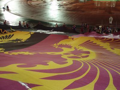 写真は試合終了後 ビッグフラッグをたたむ瞬間です。