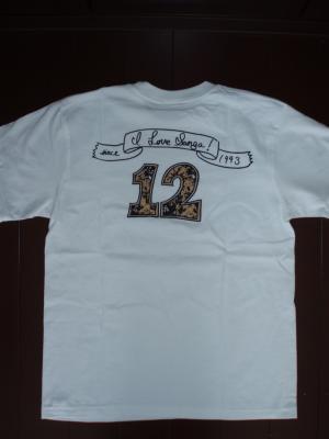 バックデザインは「I love Sanga. Since1993.」の文字に大きくサポ番の「12」が付いています。