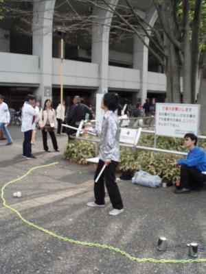 駆け出しの若者による大道芸でギャラリーを沸かせます!