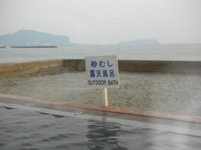 (ちなみに写真は、砂に埋もれた後に砂を落とすためにはいる露天風呂です。目の前に広がる錦江湾が最高です)