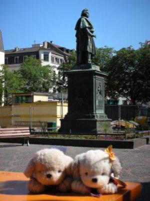 ベ−ト−ベンの銅像を見て、サムライブル−のメディアセンタ−で見知らぬサポと