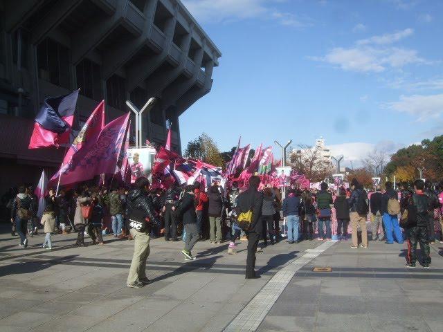 サポーターもバスが入場する時点から大きな声で迎え入れ