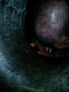 今ベロンベロンになりながらメールしてます。写真は酔っ払ってオブジェをくぐろうとする会社の先輩。みんな挑戦して無残に散りました。桜散る(笑)。