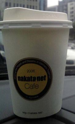 ホットドリンクはnakata.net.cafeのロゴ入りのカップに入れてもらえます