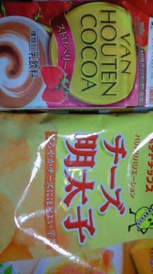 あと、コンビニで見つけたバンホーテンのココアのイチゴ味&チーズ明太子ポテトです。