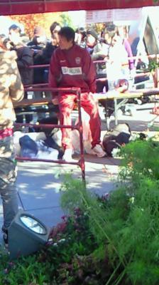 韓国料理って事で電報ブースでの休憩中のナミル兄さん。
