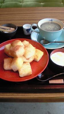 菊水茶房?で朝食で〜す。これからホムスタへ向かいます!!