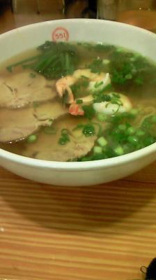 寒くてかたまってたので、あったかいラーメン♪551麺です。エビや椎茸も入ってておいしいです。