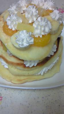 ではないのですが(笑)ホットケーキで三段ケーキを作りました。
