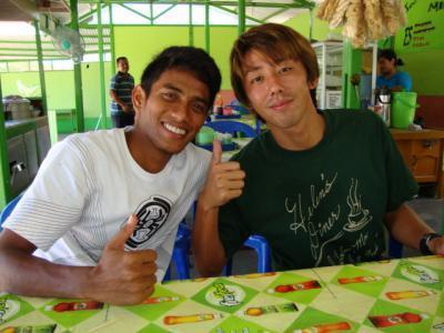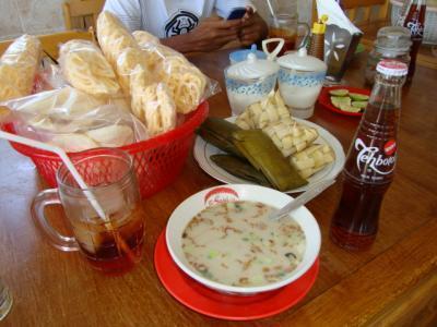 スープの中にはビーフが入っいて、ニンニク風味で美味しい〜。
