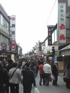 平日にも関わらずたくさんの方が赤福を片手に買い物をしています。