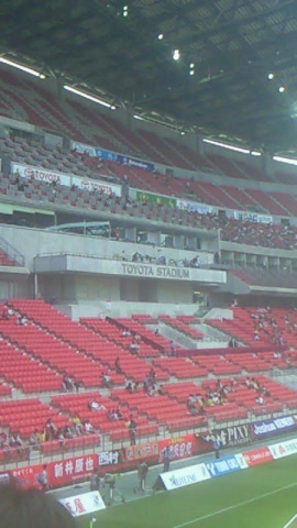 いつもの仲間と共に、首都高から東名を通り、豊田市に到着したのが、13時ごろ、トヨタ本社の駐車場に車を止めて、シャトルバスにて、豊田スタジアムへ[d35]