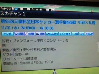 ただ今、甲府vs札幌をスカパー!観戦中ですが、