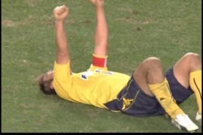 そして逆転。走りきった巻キャプテンは、終了の笛と共に崩れ落ち、空に向かってガッツポーズ。