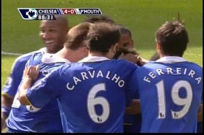 デコの初ゴールに群がる、やさしいチームメイトたち。