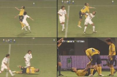 足を気にしながら引きずりつつベンチに向かって手を上げメディカルを呼び、