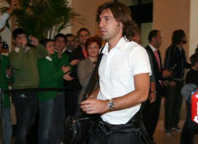 ::: ユニセフ関連のチャリティー親善試合でアルバニア、ティラナへ到着したピルロ。 :::