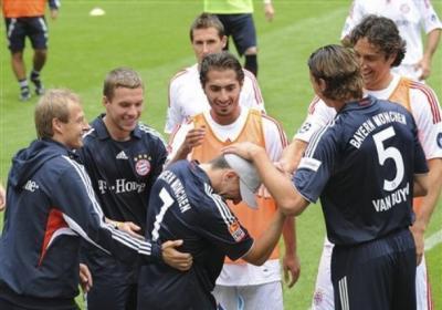現れた途端、監督はじめ、みんなに揉みくちゃにされて歓迎を受けるリベリさん。